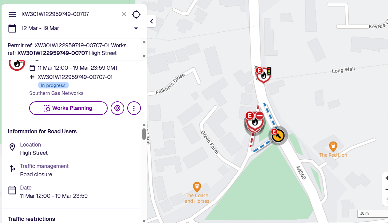 The anticipated end date of this emergency closure is 19/03/2026 (full closure 24hrs each day). one day on 12/03/2026 (from 09:10hrs to 18:00hrs).